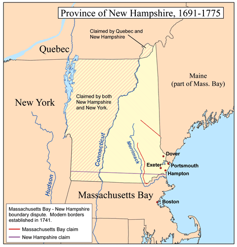 A similar contingency occurred to the north. The Massachusetts charter defined its northern boundary as three miles north of the Merrimack River. However, 17th-century cartographers didn't realize that the Merrimack turns sharply north in central New Hampshire. When they discovered this, Massachusetts interpreted the charter literally, claiming its territory should follow the river's bend all the way to its source at Lake Winnipesaukee.