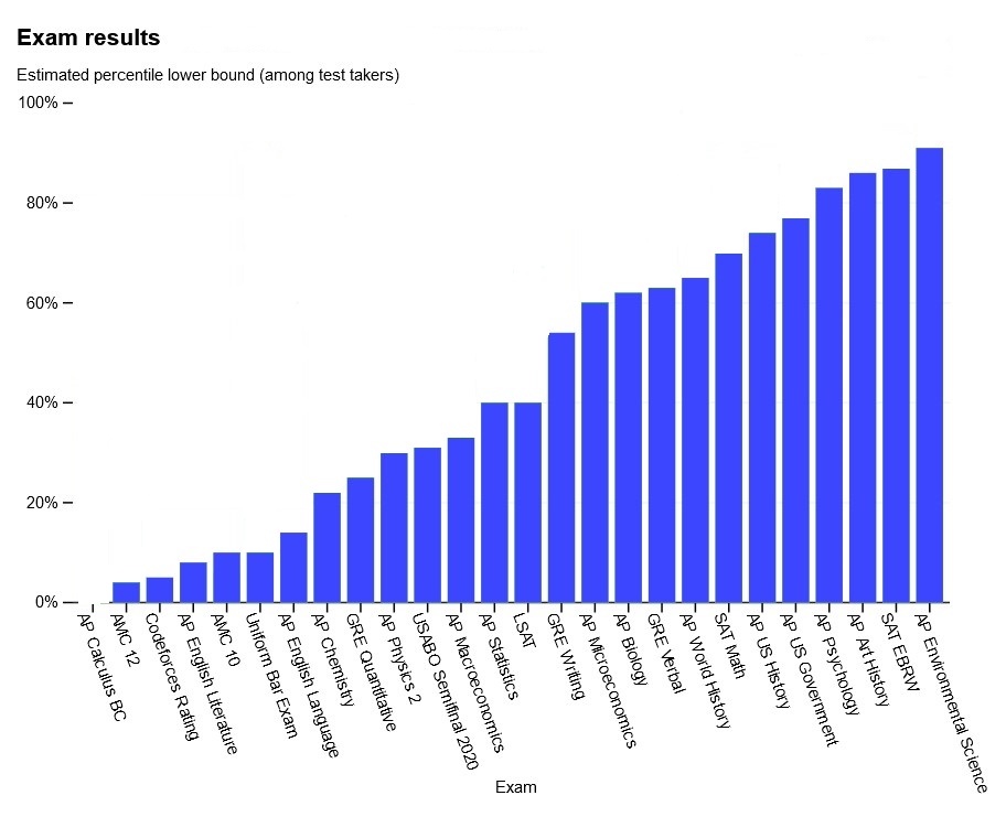 Let me give another couple of examples. Look at this chart, which shows GPT-3.5’s performance on a range of real-world tests. Now look at this chart, which shows GPT-4’s improvement. If these robots have gone from writing decent five-paragraph high school essays to passing the Bar Exam (in the 90th percentile!!) in six months, do we really think they won’t figure out citations in the next year, or two, or five? Keep in mind that GPT-4 is a general purpose model that’s engineered to do everything pretty well. It wasn’t even engineered to take the Bar Exam. Google CEO, Sundar Pichai tells us that AI computing power is doubling every six months. If today it can kill the Bar Exam, do we really think it won’t be able to produce a plausible article for a mid-tier peer reviewed scholarly journal in a minor sub-discipline of the humanities in a year or two? Are we confident that there will be any way for us to tell that machine-written article from one written by a human?